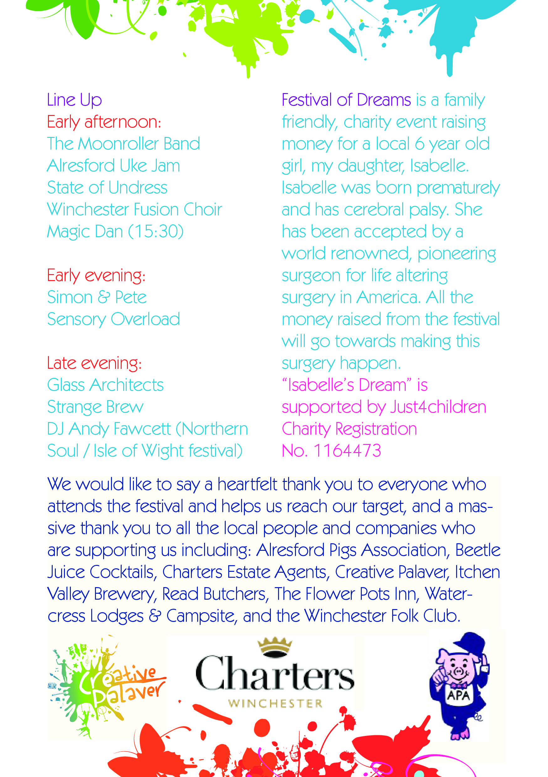 The festival site is located on Bighton Hill, on the outskirts of Ropley. Postcode is SO24 9SQ